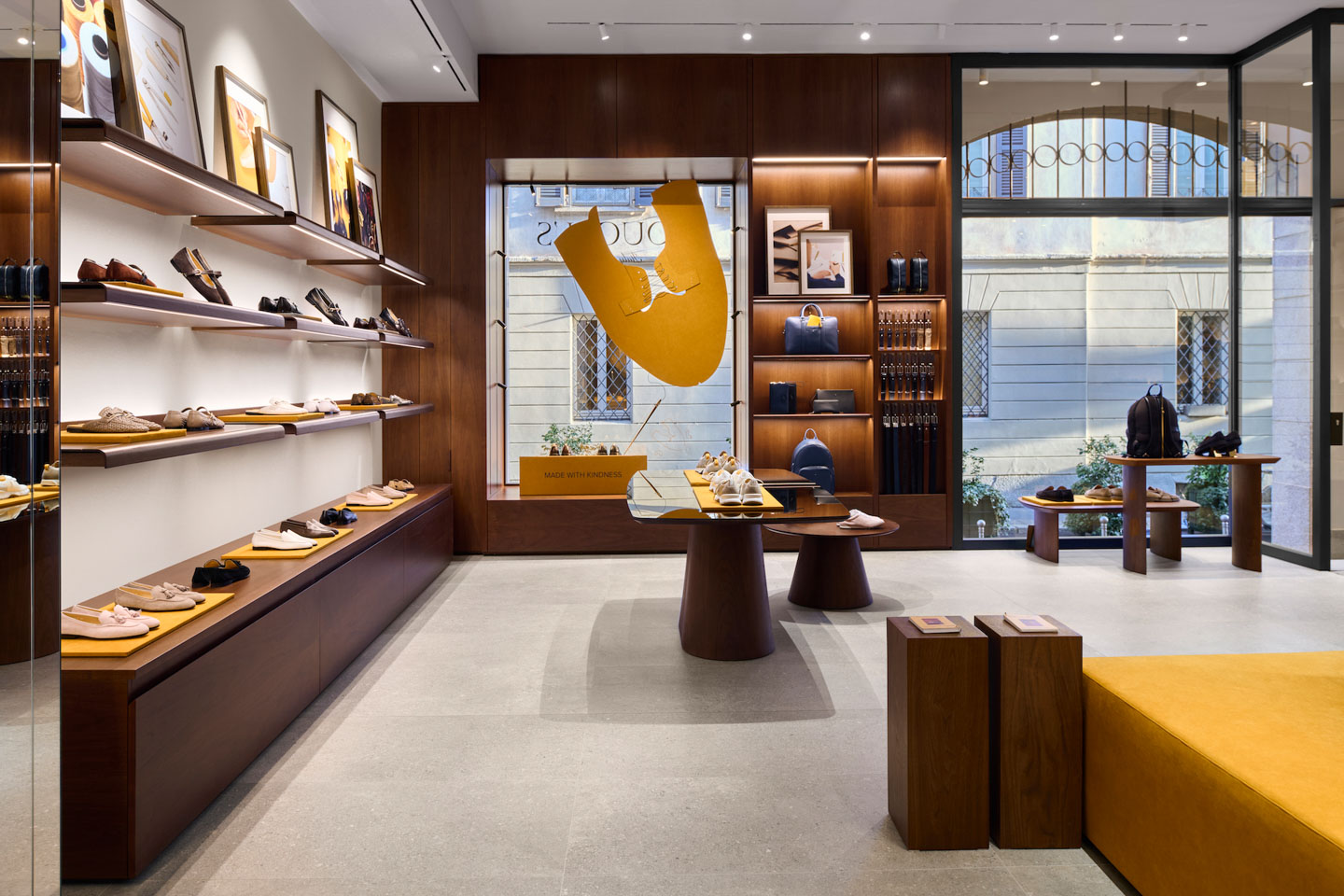 Il nuovo spazio in via Gesù 11, progettato dallo studio Palomba Serafini Associati, si configura come una "dimora contemporanea" dove l'architettura nitida e razionale funge da palcoscenico per l'eccellenza artigiana.